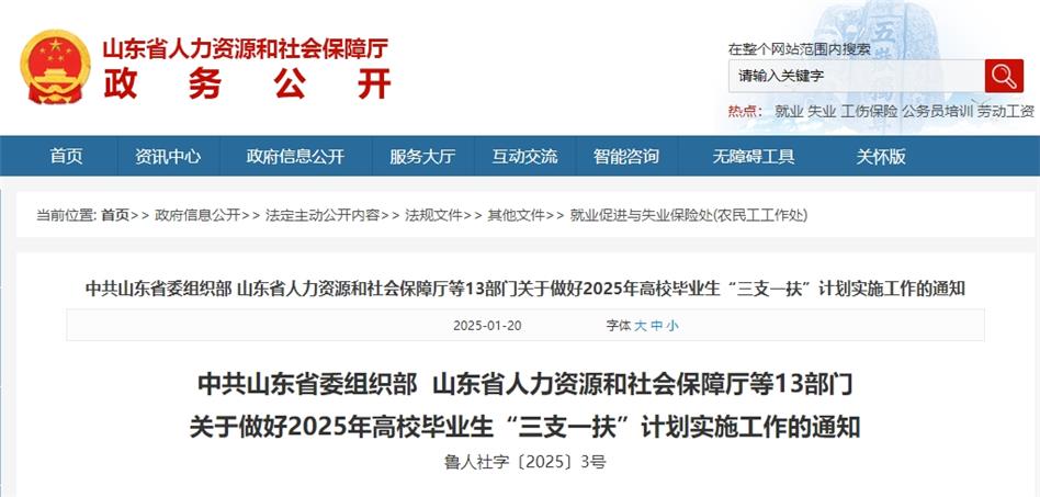 中共山東省委組織部 山東省人力資源和社會保障廳等13部門關(guān)于做好2025年高校畢業(yè)生“三支一扶”計劃實施工作的通知